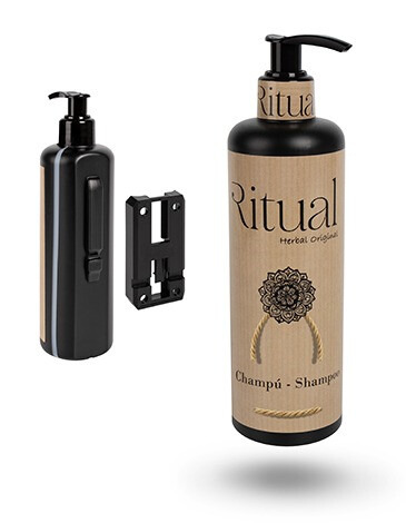 CHAMPÚ - SOPORTE INVISIBLE ANTIHURTO CON LLAVE (CONTENIDO SOPORTE CON ACCESORIOS Y BOTELLA DISPENSADORA VACIA)
