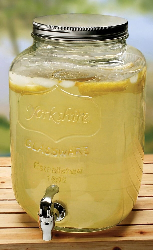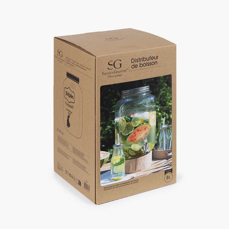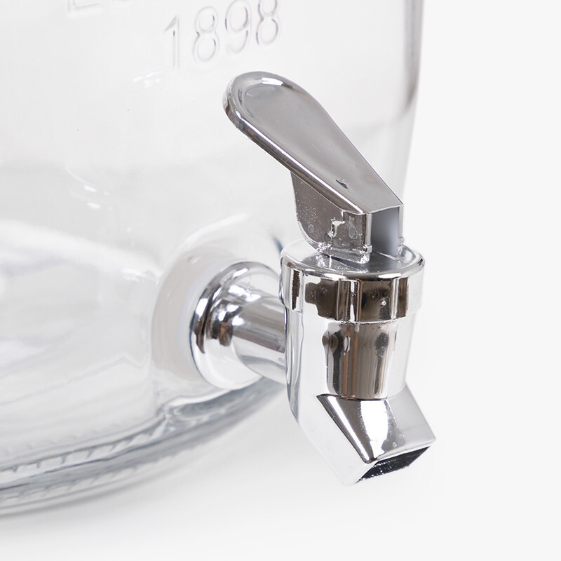 Capacidad de 8 L. Contenedor de gran capacidad para darles la bienvenida a tus huéspedes, este gesto lo agradecen muchísimo. Puedes servir tus bebidas fresquitas añadiendo hielo en el interior o cualquier preparado con fruta gracias a su gran apertura superior. Realizado en vidrio con un bonito diseño con letras en relieve. Incluye tapa a rosca metálica y un grifo dosificador de plástico cromado desmontable para su limpieza con sistema anti goteo para mantener limpia la superficie. Tiene una capacidad de 8 L. Medidas aproximadas del dispensador: 17 cm ancho x 32 cm alto x 22 cm profundo (contando el grifo).