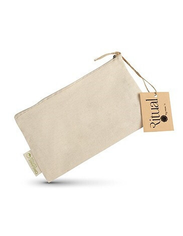 Neceser fabricado en material100% algodón orgánico de 180g/m2 y en tono natural. Medidas 21x12.5cm