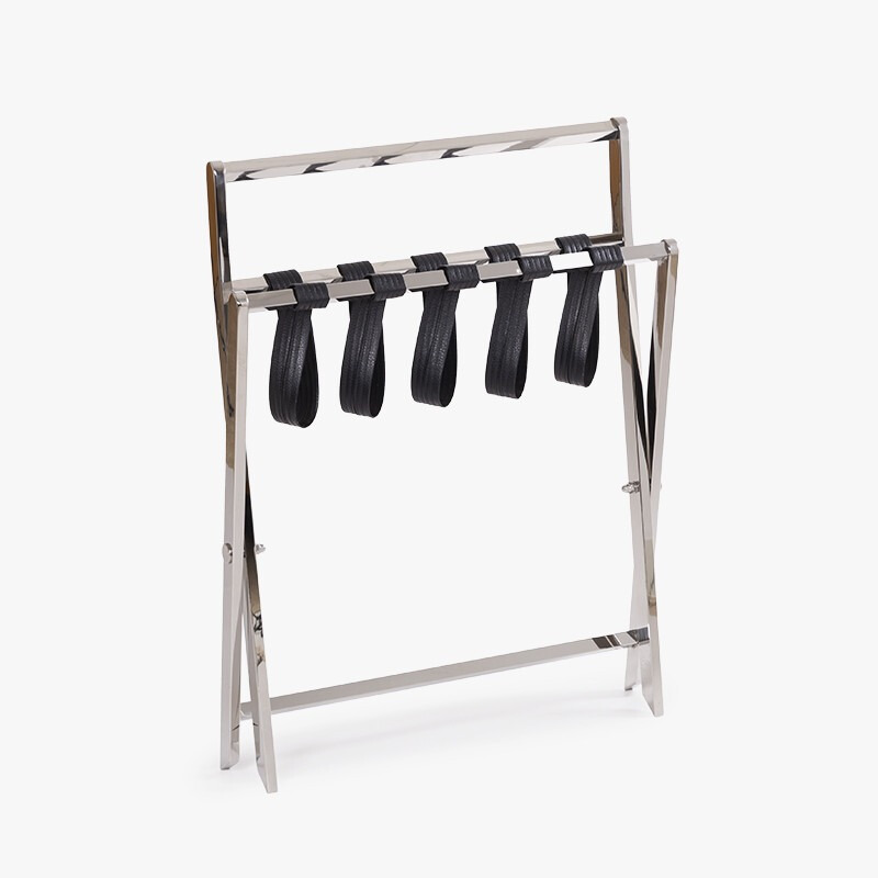 Este reposa maletas es útil para facilitar el manejo del equipaje, evitar que las maletas toquen el suelo y protegerlas de la suciedad. Además es plegable, lo que permite guardarlo de forma compacta cuando no se está utilizando. Tiene una estructura metálica y cintas de poliéster para soportar el peso de los objetos.