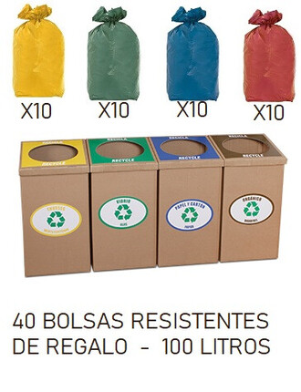Preço/unidade: 17,0000€ NovoSET 4 PAPELERAS ROBUSTAS DE RECICLAJE ZONAS COMUNES (100 LITROS )