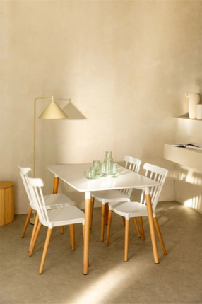 Preço/unidade: 147,0000€CONJUNTO DE MESA DE COMEDOR RECTANGUAL EN MADERA DE HAYA Y MDF (100X80cm) Y 4 SILLAS