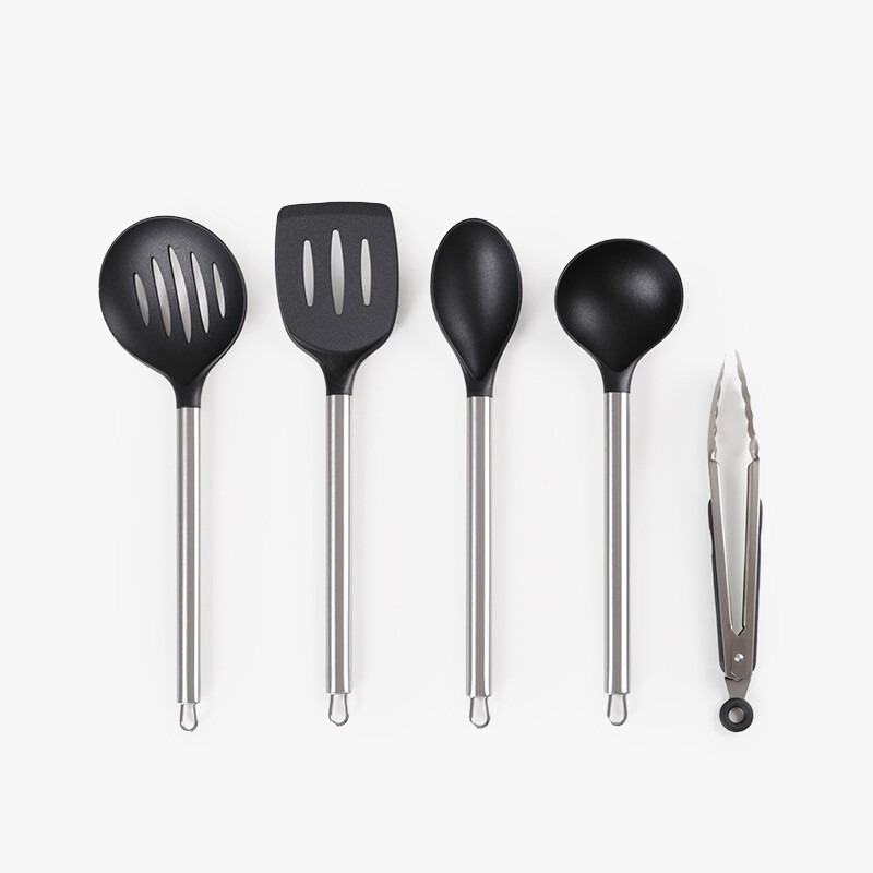 El set de utensilios de cocina Krhüner es ideal para equipar tu cocina con herramientas prácticas, resistentes y elegantes. Fabricados con mangos de acero inoxidable y cabezales de nylon resistente al calor, estos utensilios son perfectos para usar con sartenes y ollas antiadherentes, evitando rayaduras y garantizando una mayor durabilidad.