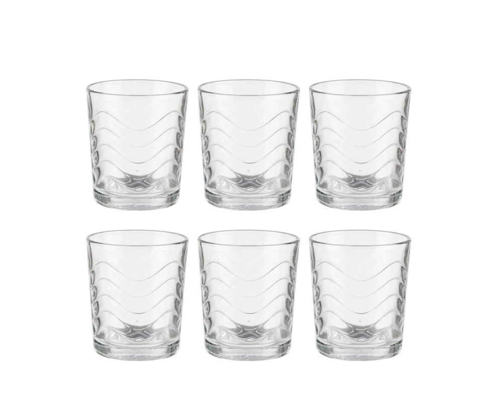 PACK DE 6 VASOS DE CRITAL ROBUSTOS Y RESISTENENTES ESTILO MODERNO ONDAS 26CL.
