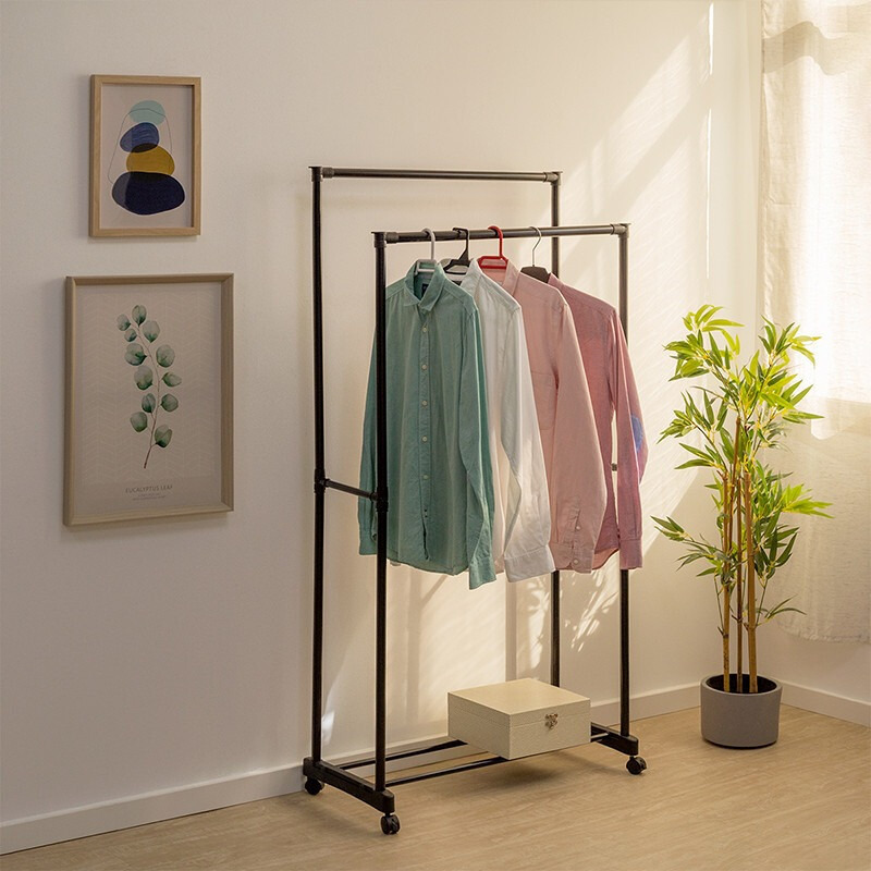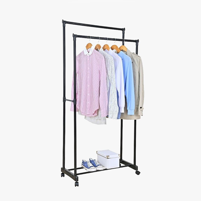 Mantén tu ropa perfectamente ordenada con este perchero doble móvil con zapatero, ideal para optimizar el espacio en tu hogar. Su diseño versátil permite colgar todo tipo de prendas, desde abrigos hasta camisas, mientras que su práctico zapatero inferior te ayuda a mantener tu calzado siempre a la vista y organizado.